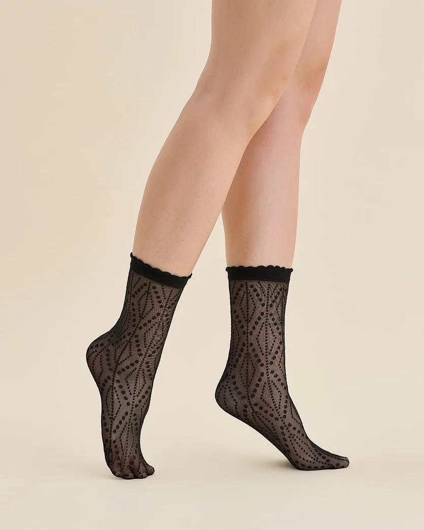 Damskie skarpetki rajstopowe LOMA w romby i kropki, które układają się w geometryczne wzory, to idealny sposób na nadanie stylizacji modnego twistu. Wzór, który jest nieco ciemniejszy od tła, nadaje skarpetkom wyrazistego charakteru. Ozdobny ściągacz wykończony falbanką zapewnia wygodę, utrzymując skarpetki na swoim miejscu bez ucisku.