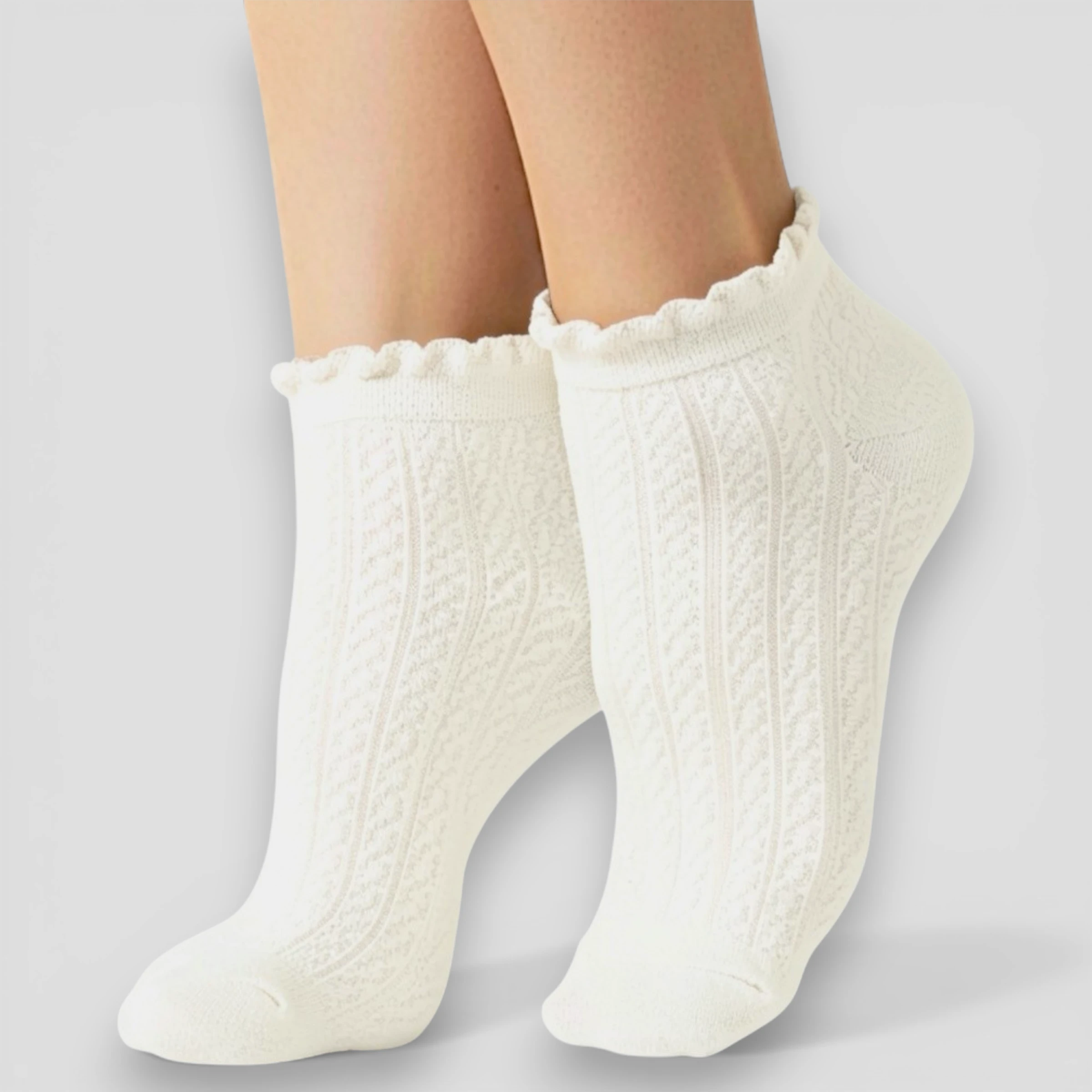 Dzięki ażurowemu wzorowi skarpetki wyglądają lekko i stylowo, a jednocześnie zapewniają dobrą cyrkulację powietrza — świetne rozwiązanie na ciepłe dni i aktywności na świeżym powietrzu. Elastyczny ściągacz trzyma skarpetki na miejscu bez ucisku, a antypoślizgowe wykończenie daje pewność w każdym bucie.